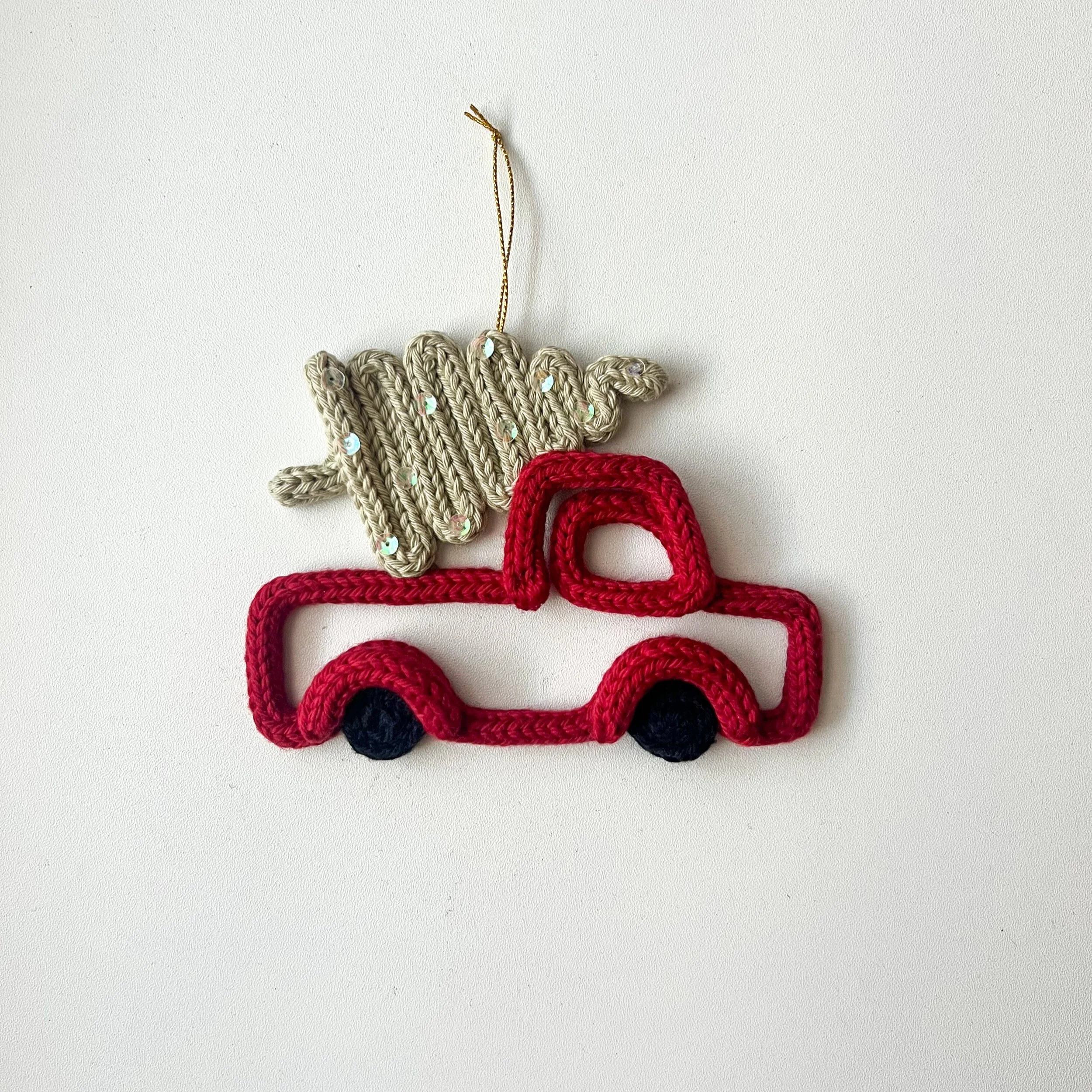 Hang this knitted wire ornament on your Christmas tree, on a shelf or hang on the wall as decor this holiday season!